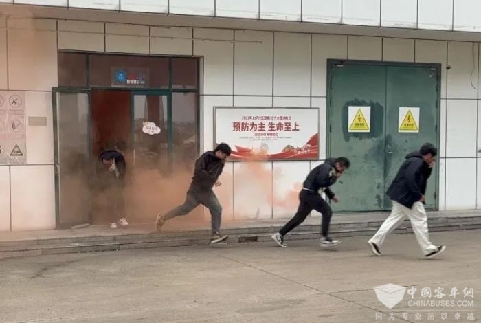 演练最后环节模拟了职工驿站突发火情场景。随着警报响起,浓烟迅速弥漫,参演职工迅速用湿毛巾捂住口鼻,弯腰沿安全通道有序撤离至指定集合点。整个过程分工明确、行动高效,仅用时2分钟便完成全员疏散。随后,应急小组对火源扑救、伤员救助等环节进行了复盘,进一步完善了应急预案的细节。