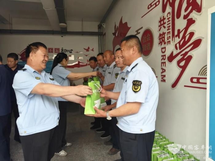 为做好防暑降温工作,切实保障一线职工的身心健康,临沂公交集团为坚守岗位的公交驾驶员们准备了茶叶、冰糖、风油精等防暑用品,为坚守岗位的一线职工送上一份关爱、送去一丝清凉。同时,叮嘱他们在炎热的天气中注意行车安全、爱护好身体,合理安排休息时间。