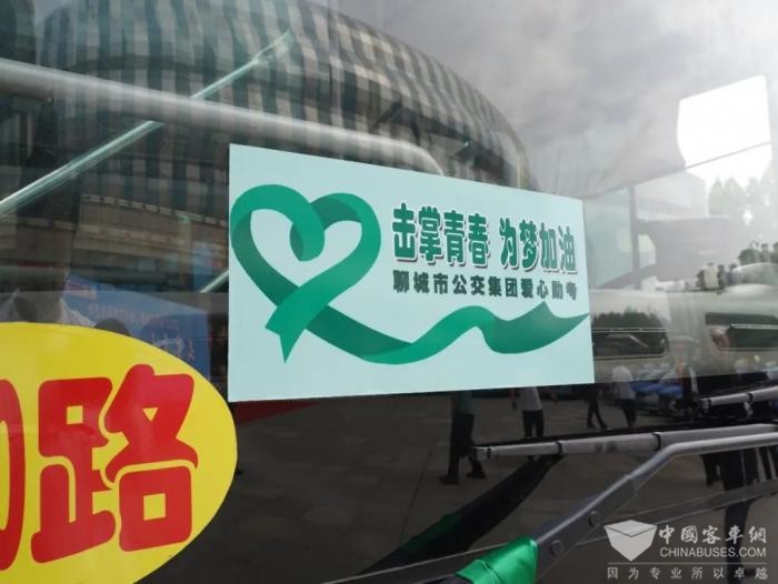 市公交集团所有线路公交车车内LED显示屏滚动播出“聊城市公交集团祝广大考生金榜题名”“高考期间,考生凭准考证免费乘坐公交车”等字样。制作“爱心助考”标识,醒目位置张贴摆放。