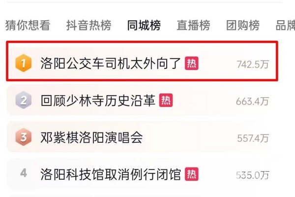 7月28日,一网友发布的“洛阳公交车司机太外向了”的视频登上抖音“同城榜”榜首,主角是洛阳公交集团神都游7号线的车长石亚杰。该视频在发布36小时内就获得了13万点赞、5000条评论和11万次转发,让他再次成为网络焦点。其独特服务模式也吸引了大河报、河南手机报、掌上洛阳、直播洛阳等本地新媒体,乃至一些外地市新媒体平台的关注与转载报道。