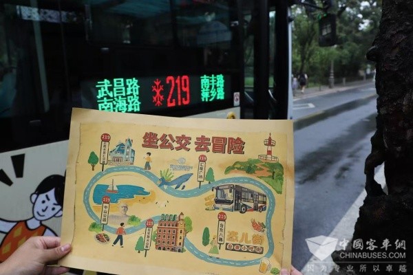 “我们意识到219路本身就是一条流动的岛城风景线。”市北巴士第六分公司党支部副书记解玮玮介绍道,“我们精心制作了219路复古风打卡地图,清晰标注了这五大核心景点,泛黄的纸张搭配复古风格的设计,瞬间便唤醒人们对旧时光的温情记忆,为市民乘客提供‘一站式’文化出行指南。”