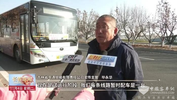 吉林省亨通贸易有限责任公司宣传主管 毕永华:现在是试运行阶段,我们每条线路暂时配车是一台,首末车发车时间都是首班每天早上6:00、8:00,晚上是16:30和18:00,这三条线路都是一票制,票价是2元,只要是市内的公交卡全可以刷卡乘坐这个公交车。