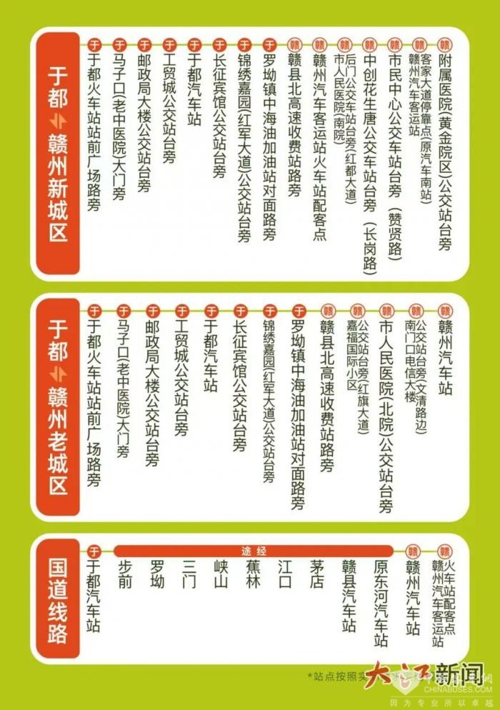此次推出的城际巴士,精心设计三条核心线路,全面覆盖赣州新老城区、于都县城及国道沿线关键区域,全方位满足不同旅客出行需求。赣州老城区与于都间线路每日双向发班18趟,新城区线路每日双向发班18趟,国道线路每日双向发班9趟。夜间还增设三趟直通车,进一步延伸服务时长,让出行更具灵活性。