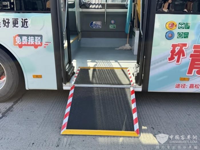 青浦巴士公司机务部技术人员王建根介绍说:“现在投入的新车均采用低地板设计,并加装了无障碍设施、残疾人翻板,方便残障人士上下车。车辆采用‘低入口’设计,乘客尤其是老人和儿童只需一步即可轻松跨入车厢,相比传统公交车减少了多级踏步。同时,乘客座椅全部升级为软包材质,提升了乘坐舒适性。”