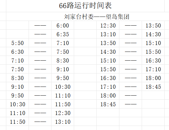 1.新开通66路:望岛集团-刘家台村委
