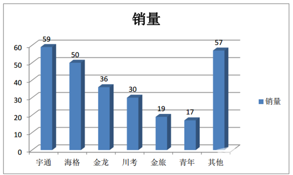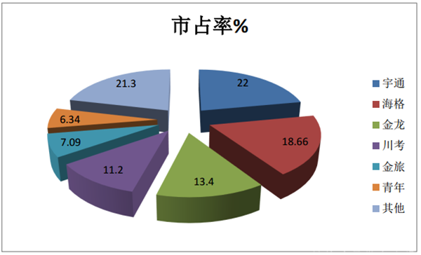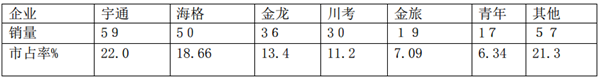 特征二、宇通是老大;海格居亚军,金龙居季军、川考列其后