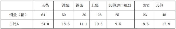特征三、玉柴动力占最大,进口发动机偏好德系和日系