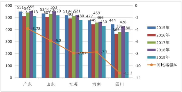 - 2019年一季度苏、鲁、粤、豫、川11-12米公路客车市场特点简析