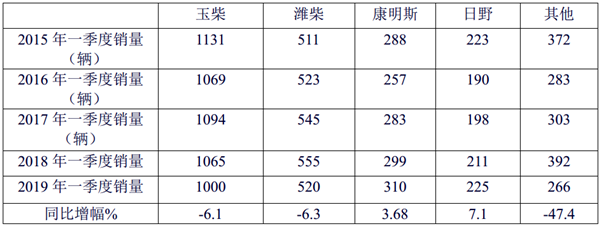1、 玉柴发动机仍然是销量最大的动力,但同比出现降幅;