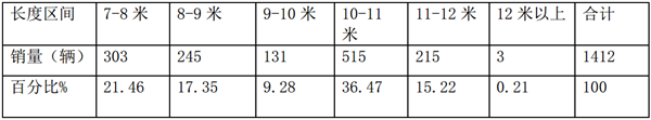 在该区域7米以上客车共计销售1412辆。具体见下表: