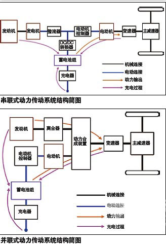 上述三种动力系统布置中,串联式适合于制动频繁、怠速工况时间长且车速较低的公交车,对于站点距离短的公交路线非常适用;而并式联和混联式则适合经常加速行驶的干线公交车或快速公交,适用于站点距离长或者具有全封闭行驶路权的公交线路。