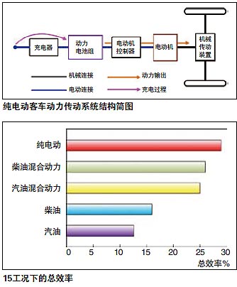 在石油资源日渐减少且不可再生的今天,纯电动客车与燃料电池客车选用电能驱动车辆运行,从而摆脱了客车对于传统石油燃料的依赖。这两种电动客车在运行时可实现污染物的零排放,而且噪声低、振动小,乘坐舒适性好。同时,根据日本相关权威机构的研究结果,从汽车各种动力系统的综合效率分析,电动汽车的的综合效率最高。