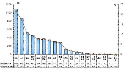 2003年11月中客主要企业产量及所占比重排序