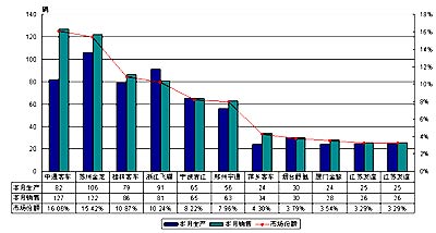 6-7米客车本月销量所占总销量12.33%,比去年12月上升2.18%,本月这一区段销量为791辆。表中10家客车企业销量所占本区段系列总销量83.69%。在这一区段中本月各厂家并没有拉开差距,中通客车仅以5辆优势领先苏州金龙,而桂林客车和浙江飞碟的差距也是5辆。