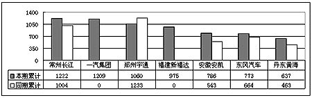 2004年1~5月份大型客车销量对比(前7家企业) 单位:辆