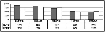 2004年5月份轻型客车前五家产销对比 单位:辆