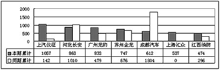 2004年1~5月份轻型客车销量对比(前7家企业) 单位:辆