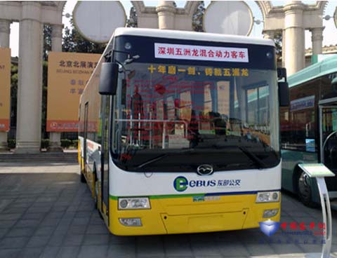 作为节能、环保的先锋,坚持走自主创新之路的深圳五洲龙客车始终走在新能源研发的前列,在本次博览会上,深圳五洲龙混合动力FDG6111HEVG客车备受瞩目。据了解,这款车已经是该系列的第八代产品,用“十年磨一剑”来形容它的研发、改进、制造、完善的过程再合适不过。它具有自主知识产权,国内首款同时配置能量智能控制系统、电机控制系统、自动离合器控制系统、电子信息管理系统;同比节省燃油30%以上;全自动变速、驾驶简单轻松、乘坐平稳舒适;纯电动起步,噪音小,排放低;采用同步控制离合器专利技术,离合器寿命延长十倍以上;自动监测储能状况,拥有行车自动补电和PLUG-IN装置低谷充电,节省费用等一系列优点。