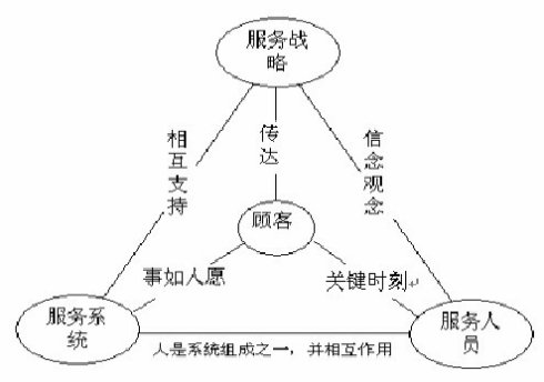 上图是一个常用的服务体系建设工具。它突出了“战略思考”和“服务员工”这两个要素的特殊重要地位,对服务体系设计的指导性非常好,被誉为“服务金三角”。