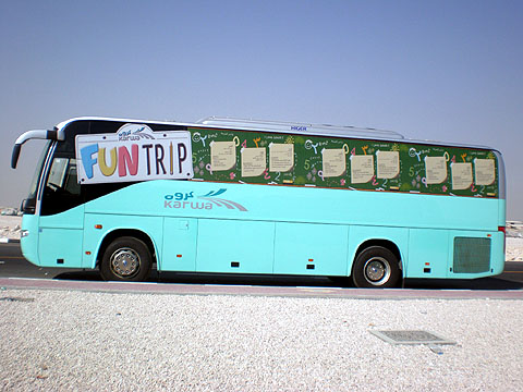 目前,有600多台海格客车作为校车,服务于全国的中小学校,每天这些天蓝色的、外形美观的海格客车穿梭在卡塔尔的学校和大街小巷,接送整个国家的小学生、中学生上学和回家,伴随着他们度过美好、快乐的童年和少年时光,成为波斯湾畔最有意义、最美丽的风景之一。