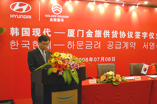 韩国现代自动车株式会社徐英俊专务对金旅的发展也给予了高度的肯定。他说,厦门金旅凭借其产品的优越性能、品质以及完善的全国售后/零配件供应网络,成为中国国内优秀的客车制造企业。这次现代自动车与厦门金旅的合作,可谓是创造了最理想的结合。相信通过韩国与中国两国市场中最优秀的两家企业的技术与力量的完美结合,两家公司定可以为顾客提供具备他们所希望的所有要素的完美产品。