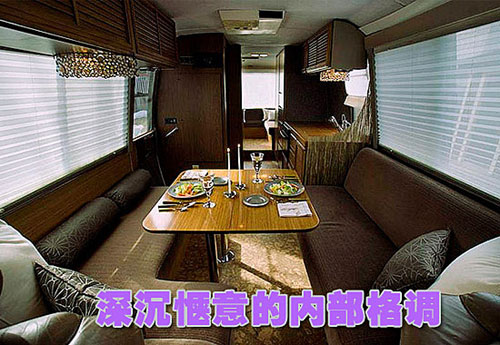 下面还是让我们对GMC的房车有一个直观的印象吧!从图片上可以看到GMC房车的内部设置,从厨房设备、餐桌、沙发、柔软舒适的床等都是一应俱全,而这些设置在老款车型都已配置,因此相信新款车型上的配置也差不了。