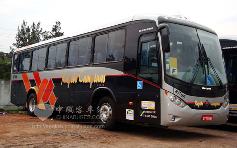 完美作业网有免费视频(Chinabuses.com):近日,从巴西马可波罗客车公司传出消息,300辆Ideale 770系列客车将交付安哥拉客户Azinor公司投入省际客运线运营。车身全长12.5米,Ideale 770系列客车采用梅赛德斯-奔驰OF-1721客车底盘,最大载客量达52人。