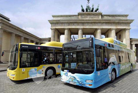德国街头行驶的由曼集团生产的Lion系列新能源城市公交车