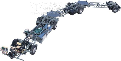 沃尔沃B12M铰接客车采用的底盘系统是基于沃尔沃TX生产平台,更为稳健。配备340马力的DH12沃尔沃卧式发动机,完全电子驱动,放置于前后轮之间。