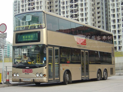 中国客车英文网[www.chinabuses.org]:双层巴士是香港独特的城市标志,在香港街头,随处都能看到它们非常漂亮的身影,结合着非常具有视觉冲击力的车身广告,它们已经成为香港一条靓丽的城市风景线。第一辆香港双层巴士于1949年4月投入服务,这就是戴姆勒CVG5。政府特别为了让双层巴士在路面行驶,把主要街道上的树木修剪及提升店铺招牌至离地4.8米高。现在,香港拥有双层巴士5000多辆,占公交车总数的80%以上。