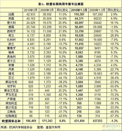 2010年一季度欧盟商用车新车注册量分析