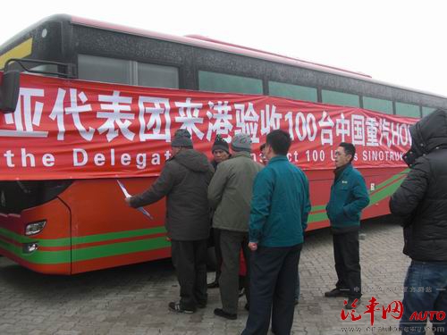 百辆重汽豪沃客车出口验车装船