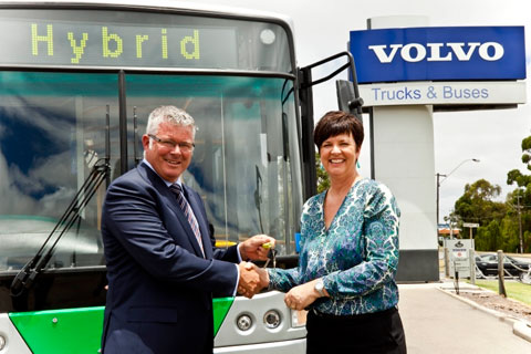 中国客车英文网【www.chinabuses.org】: 近日,沃尔沃集团交付了其在亚太地区的第一台混合动力客车。交付仪式在沃尔沃位于澳大利亚珀斯地区的经销商处举办。这台混动客车将于今年三月在珀斯的免费市内公交线路运营,运营方为西澳大利亚公交公司。这台沃尔沃B5R客车是在当地设计制造的,底盘采用经典的沃尔沃B7RLE底盘,车身为Volgren公司制造。动力为一台符合EEV标准的5升柴油发动机和一台电机组成,分别为215马力和160马力,采用并联方式。