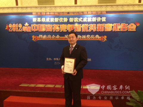 中国客车英文网[www.chinabuses.org]:2013年2月1日,在商务部国际商报社主办的“2012年度中国商务杰出企业及风云人物评选”活动中,凭借着近几年在海外市场的优异表现,安凯客车成功入选“最具竞争力出口企业50强”,成为 2012年全面打造“竞争新优势”的中国出口企业代表。