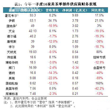 中国客车英文网【www.chinabuses.org】:今年第一季度,全球较大的汽车零部件供应商中,美系企业多数财务表现不佳,营收/利润出现下滑形势。