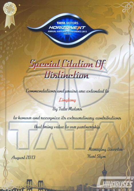 TATA 汽车授予玲珑轮胎“最佳供应商”奖