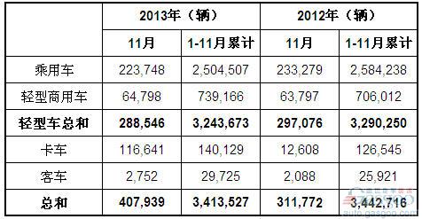 2013年11月巴西各类新车注册量统计