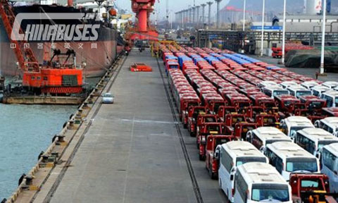 宇通近千辆大客车连云港装船出口委内瑞拉