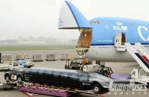 该超豪华巴士采用高科技环保技术,运行动力全部来自于由荷兰代夫特理工大学研发的锂电池组。电动巴士可以为23名乘客提供超舒适超豪华的运程。它身长15米,宽2.5米,高1.65米,并配备了8扇鸥翼式车门。
