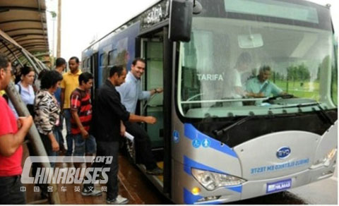 比亚迪纯电动大巴在巴西帕尔马斯试运行