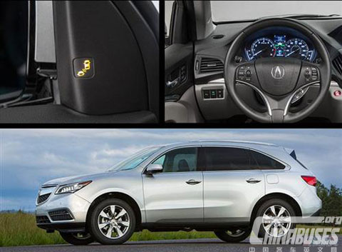 讴歌MDX。该车的盲点指示器位于A柱内侧,便于查看。
