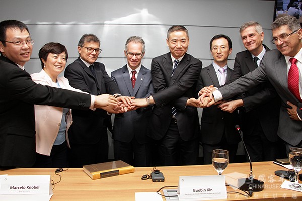 中国客车英文网【www.chinabuses.org】:当地时间6月21日,比亚迪巴西有限公司与巴西坎皮纳斯州立大学签署合作意向谅解备忘录,计划到2020年前,比亚迪将投资500万雷亚尔(约合151万美元)在该校成立首个海外太阳能研发中心,进行太阳能产品和技术的研究与开发。这是继今年4月太阳能工厂和纯电动大巴底盘工厂在坎皮纳斯市投产以来,比亚迪在巴西签署的又一重大合作项目。中国工业和信息化部副部长辛国斌、比亚迪高级副总裁李柯、比亚迪巴西有限公司总经理李铁,坎皮纳斯州立大学校长马塞洛•卡诺贝尔,以及其他中国和当地政府部门领导出席签约仪式。