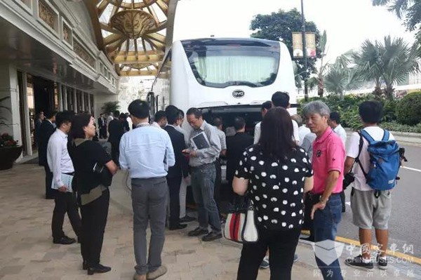 中国客车英文网【www.chinabuses.org】:8月9日,比亚迪“绿色交通解决方案”推介会在澳门特别行政区隆重举行,为当地民众展示了从道路交通到轨道交通、从旅客运输到货运物流的立体化全方位清洁交通解决方案。会上,比亚迪分别与中澳直通巴士服务有限公司和澳门银河娱乐集团,签订10.6米C8型电动旅游巴士销售协议和销售意向书,总计20台。这是继去年11月助力澳门实现电动巴士零突破之后,比亚迪在推动澳门交通电动化上的又一实质性进展。比亚迪亚太汽车销售事业部总经理刘学亮在会上致辞,现场包括来自特区政府、公交运营商、旅游服务公司、酒店集团高层人士在内的约一百余位来宾听取演讲并见证签约。
