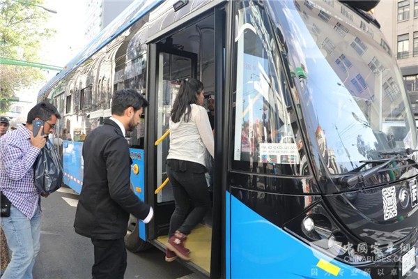 图 | 墨西哥城市民乘坐宇通双源无轨电车