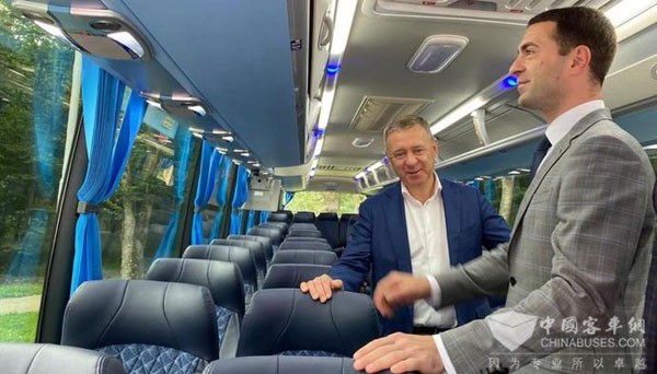 交车当天,有着丰富驾驶经验的俄罗斯司机德米特里试驾了海格客车,他表示车辆运行平稳,行李仓宽敞,乘客座椅以及可调节空气悬浮司机座椅都非常舒适,他很喜欢这款海格新车。