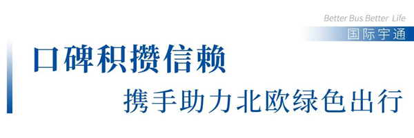 北欧五国,宇通已经成功进入四国,这也证明了宇通纯电动客车不仅经受住了北欧严苛的环境考验,也通过了工业高度发达的北欧对客车品牌的考验,宇通已经成为北欧运营商和人民心目中值得信赖的绿色客车。