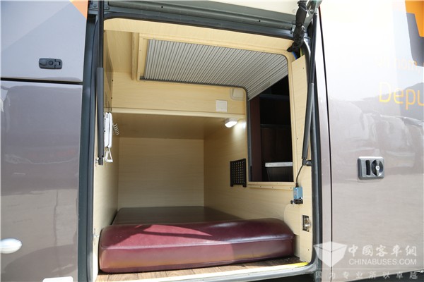 高端旅游车,自然不是说说而已。优秀的NVH静音效果,全车配有USB接口,整车WIFI全覆盖,同时配备有冰箱,乘客座椅采用运用人体工程学设计的零压座椅,软硬适中,将给乘客更好的旅途体验,让长途旅行也充满惬意。值得一提的是,这30台领航者均配有司机睡舱,带空调、暖风机和对讲机,在进行长途驾驶时,轮换司机将可以保证充足的睡眠,避免疲劳驾驶。而宽敞的行李舱空间,也配有遥控一体式行李舱门。