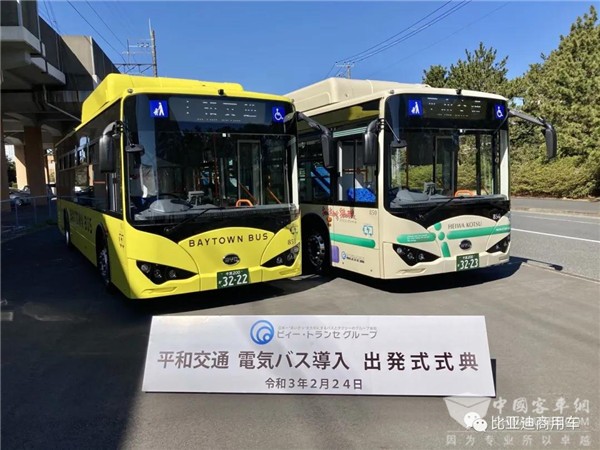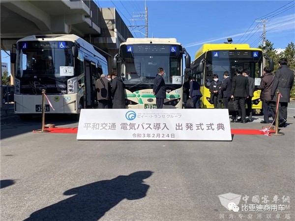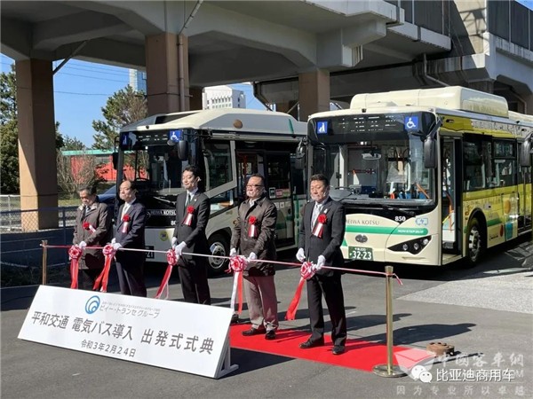 据完美作业网有免费视频获悉,2021年2月24日,比亚迪首次向千叶县导入电动大巴K8和小型电动客车J6,发布仪式在日本千叶当地举行。这也是比亚迪首次向日本交付大型电动客车K8。