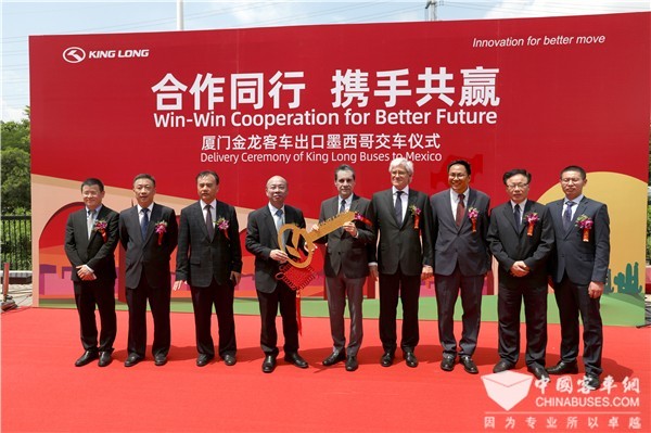 交车仪式上,墨西哥经销商代表表示:“我们相信这批环保公交的投入,有力地提高当地公交服务水平和民众出行效率,也为城市节能减排做贡献。”