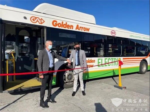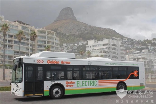 近日,比亚迪携手南非金箭巴士服务公司 (Golden Arrow Bus Services,以下简称GABS)共同宣布,在南非西开普省首府开普敦市正式投入运营比亚迪纯电动大巴。这是南非,也是整个南部非洲首批正式上路运营的纯电动大巴,西开普省也成为南部非洲大陆第一个拥有正式上路运营的纯电动大巴的省份。